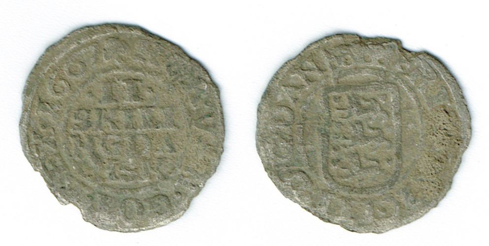 År 1667 - Fr. III - 2 skilling i kv. 1- Sieg 23.6 H140C