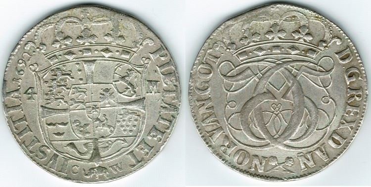 År 1692 - Chr. V - 1 krone i kv. 1+ H90C Sieg 46.3