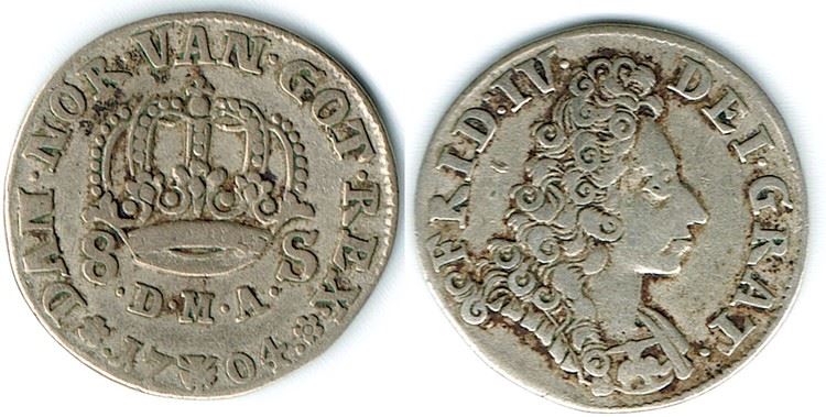 År 1704 - Fr. IV - 8 skilling i kv. 1+