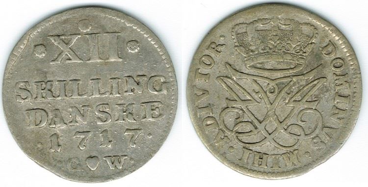År 1717 - Fr. IV - 12 skilling i kv. 1+ Hede 43B, Sieg 10
