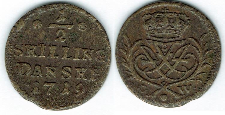 År 1719 - Fr. IV - ½ skilling i kv. 1 Hede 53, Sieg 1.2