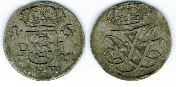 År 1722 - Fr. IV - 1 skilling i kv. 1+ Hede 51, Sieg 3