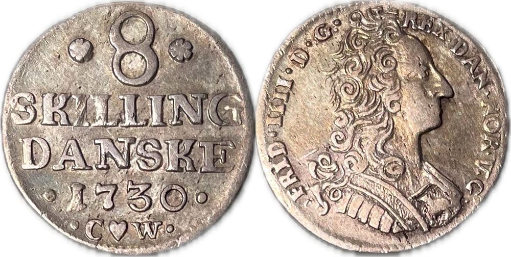 År 1730 - Fr. IV - 8 skilling i kv. 1+ - 01 H54