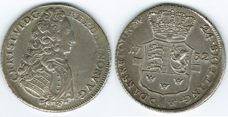 År 1732 - Chr. VI - 24 skilling i kv. 1+ - 01 - S3.2,H6B