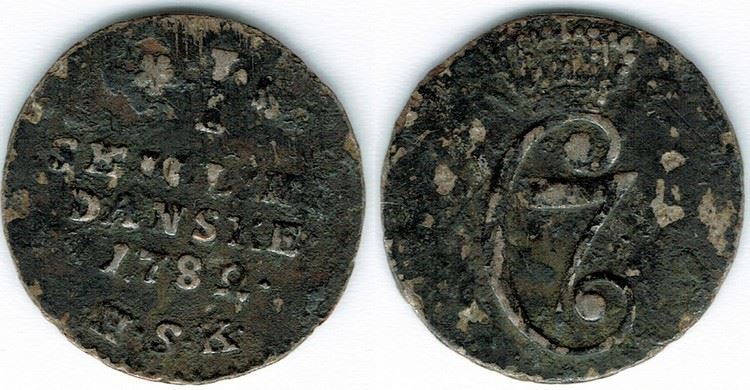 År 1782 - Chr. VII - 1 skilling i kv. 1 - mørk
