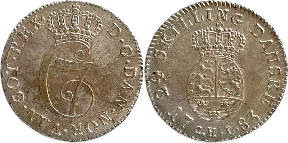 År 1783 - Chr. VII - 24 skilling i kv. 0/01 H 28A,DNF 9.2,Sch 9