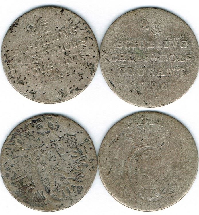 År 1787 og 1796 - Chr. VII - 1/24 specie i kv. 1-