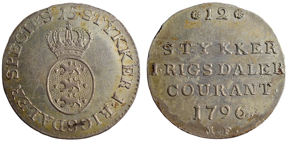 År 1796 - Chr. VII - 1/15 speciedaler i kv. 01 - 0 H15 Sieg 20