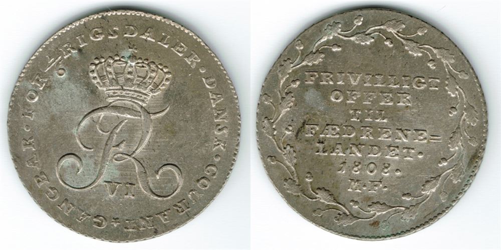 År 1808 - Fr. VI - 1/6 rigsdaler - Offermark i kv. (01) - svag grafitti