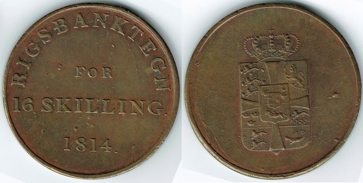 År 1814 - Fr. VI - 16 skilling i kv. 1+