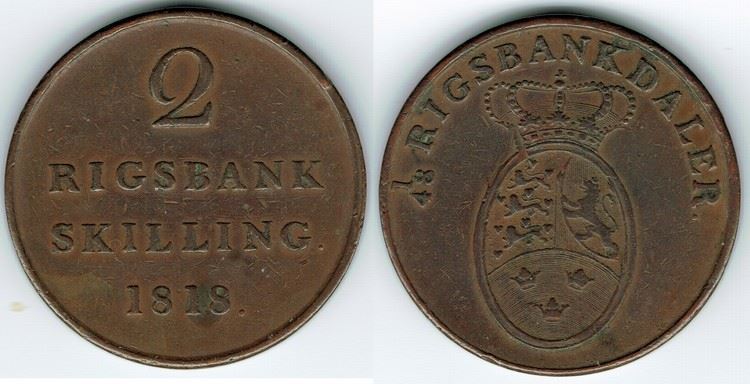 År 1818 - Fr. VI - 2 rigsbankskilling i kv. 1+