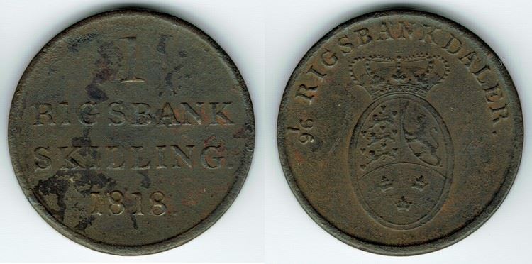 År 1818 - Fr. VI - 1 rigsbankskilling i kv. 1 - 1+ Hede 37, Sieg 17