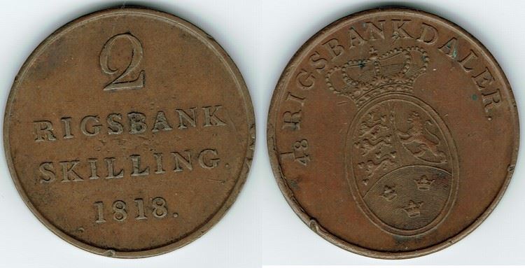 År 1818 - Fr. VI - 2 rigsbankskilling i kv. 1+ - 01 Hede 36, Sieg 18