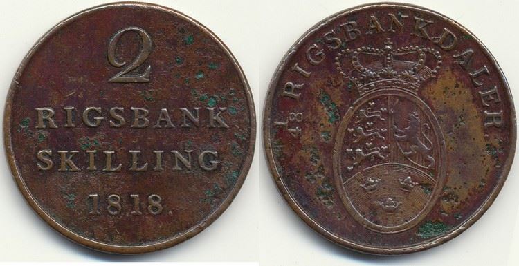 År 1818 - Fr. VI - 2 rigsbanksk. i kv. (1+ - 01) - S18
