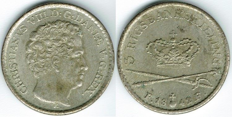 År 1842 - Chr. VIII - 3 rigsbankskilling i kv. 01 H9A Sieg 6