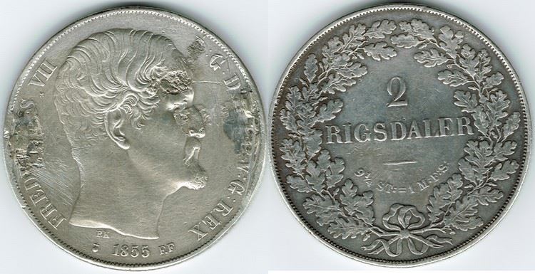 År 1855 - Fr. VII - 2 rigsdaler i kv. (1+ - 01) - hængselrester