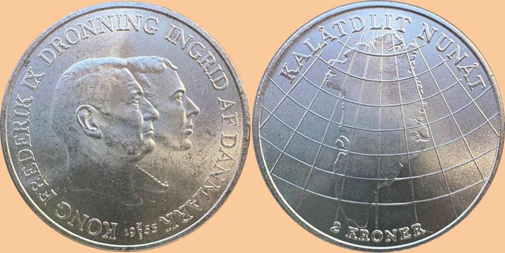 Erindringsmønt - Årgang 1953 2 kr. sølv i kv. 0