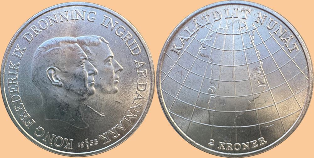 Erindringsmønt - Årgang 1953 2 kr. sølv i kv. 0
