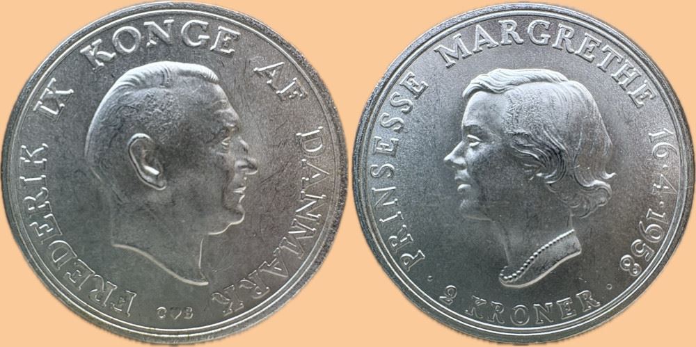 Erindringsmønt - Årgang 1958 2 kr. sølv i kv. 0