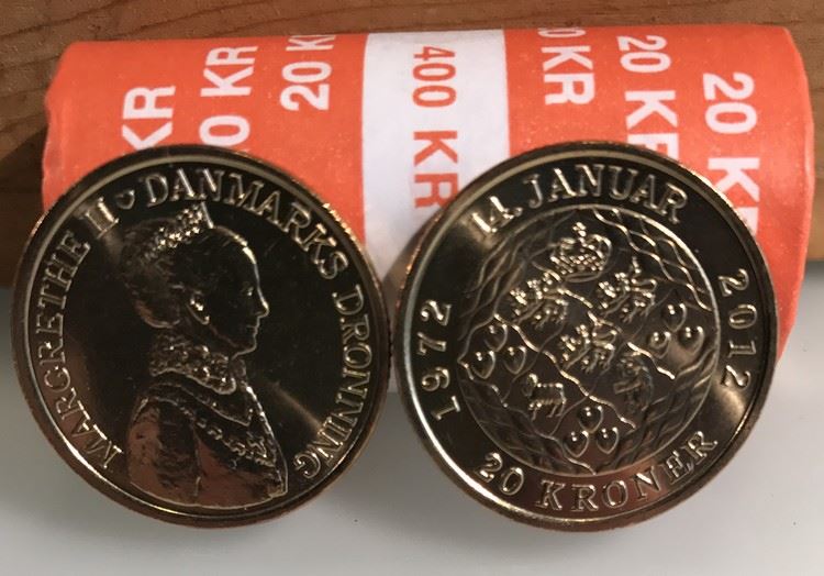 I alt 11 stk. 10 kr. og 20 kr. erindringsmønter taget direkte fra møntrulle.