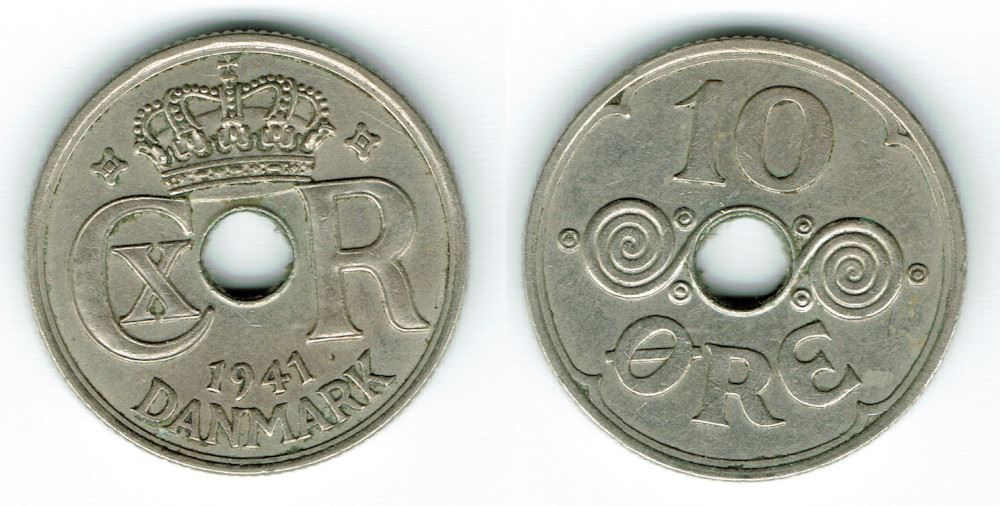 Færøerne: 10 øre 1941 i kv. (01) - Lidt beskidt