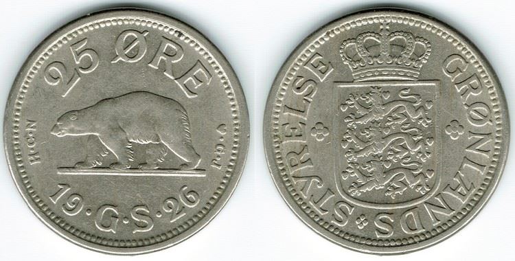 Grønland: 25 øre 1926 i kv. 01 Sieg 1 uden hul