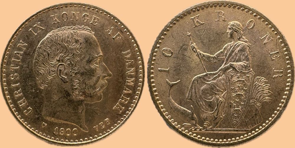Guld 10 kr. 1900 i kv. 1+