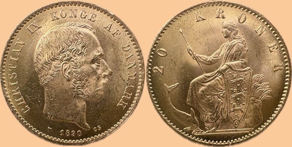 Guld 20 kr. 1890 i kv. 01