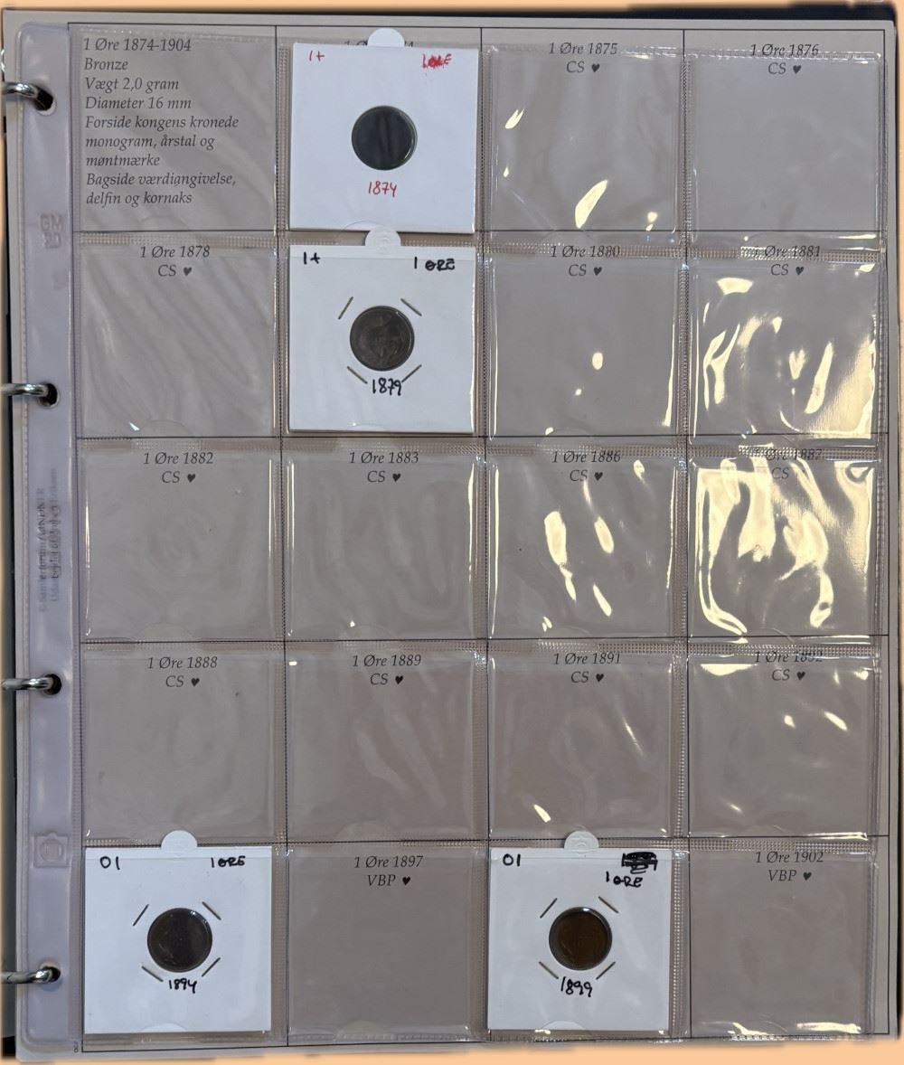 Der er ca. 22 mønter og en del i pæne kvaliteter. Album er velholdt og inkl. papomslag.