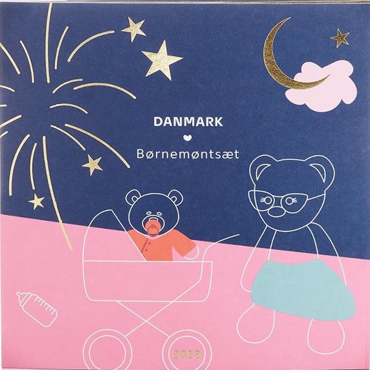 I 2018 har bamsefamilien fået et nyt lille familiemedlem, og det fejrer den glade familie med balloner, stjerner og guldfyrværkeri. Møntsættet består af Danmarks møntserie, dvs. 50-øre og 1-, 2-, 5-, 10- og 20-krone, der er præget i 2018. Børnemøntsættet er en sød gaveide til fx en barnedåb, fødselsdag eller andre mærkedage. Møntsættet er designet af senior grafisk designer Jeanette Skov Jensen fra Danmarks Nationalbank.