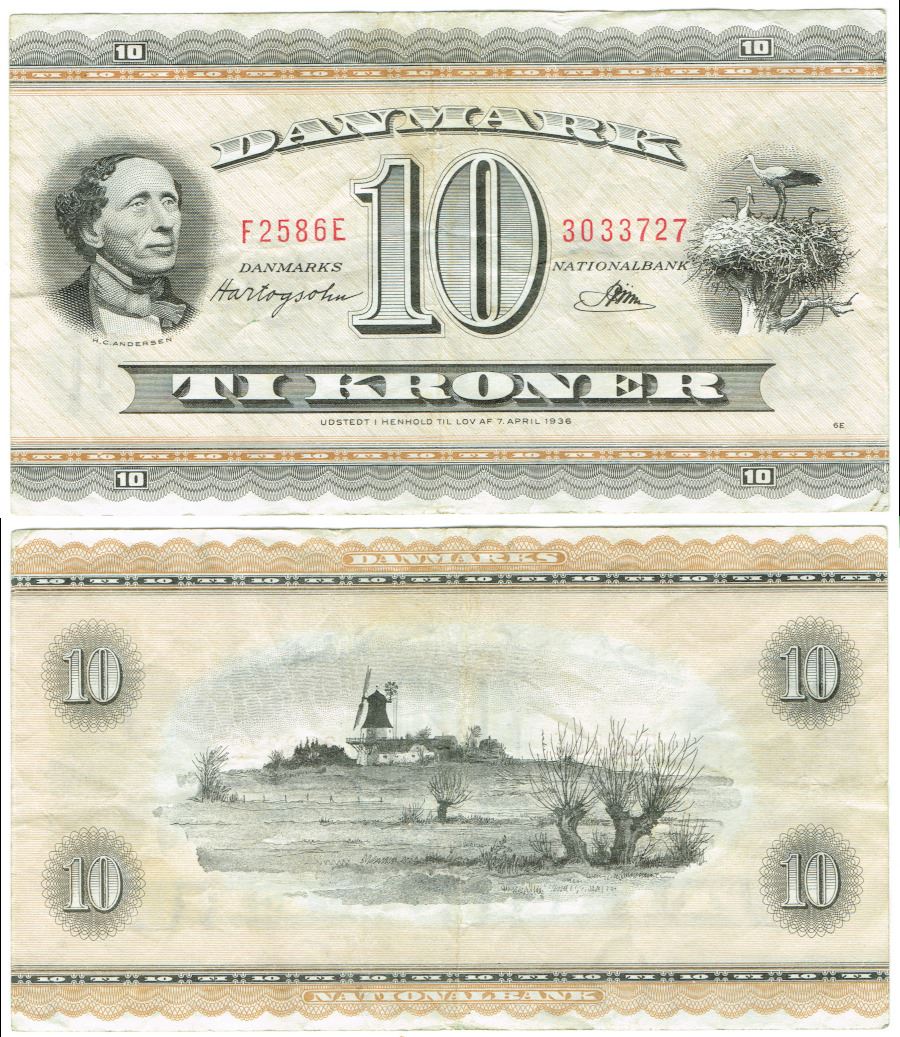 Seddel: 10 kr. 1958 F2586E i kv. 1+