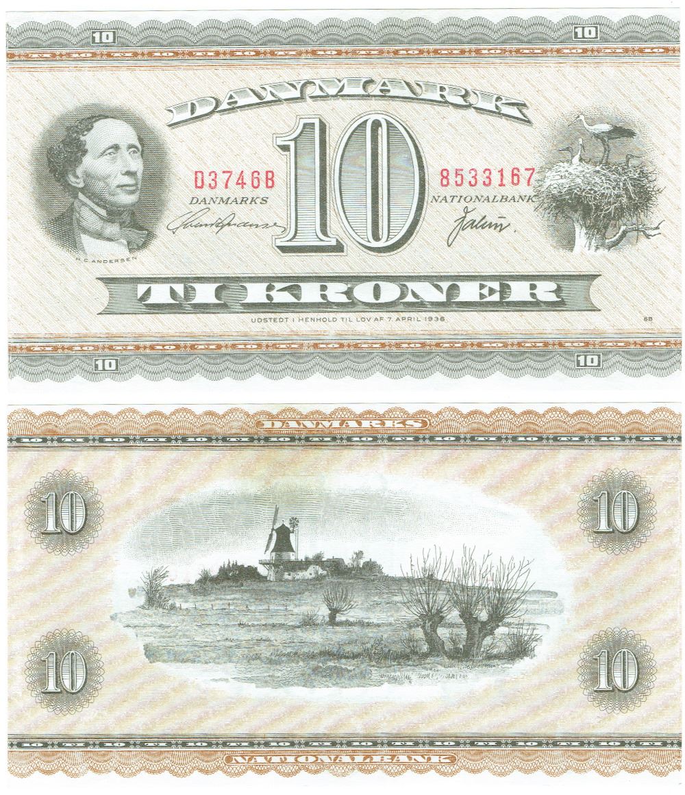 Seddel: 10 kr. 1974 D3746B i kv. (0) - Lidt nusset på bagsiden