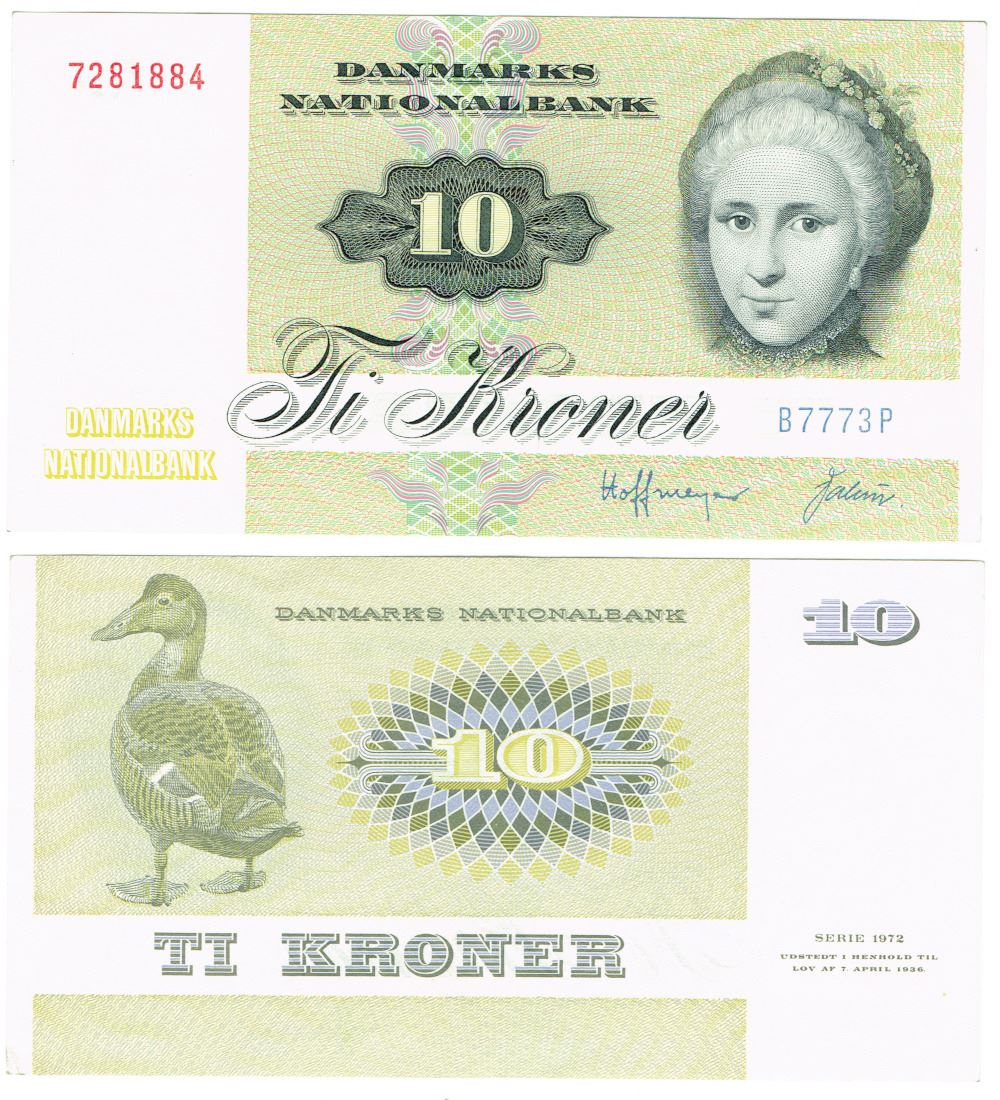 Seddel: 10 kr. 1977 B7773P i kv. 01 - 0