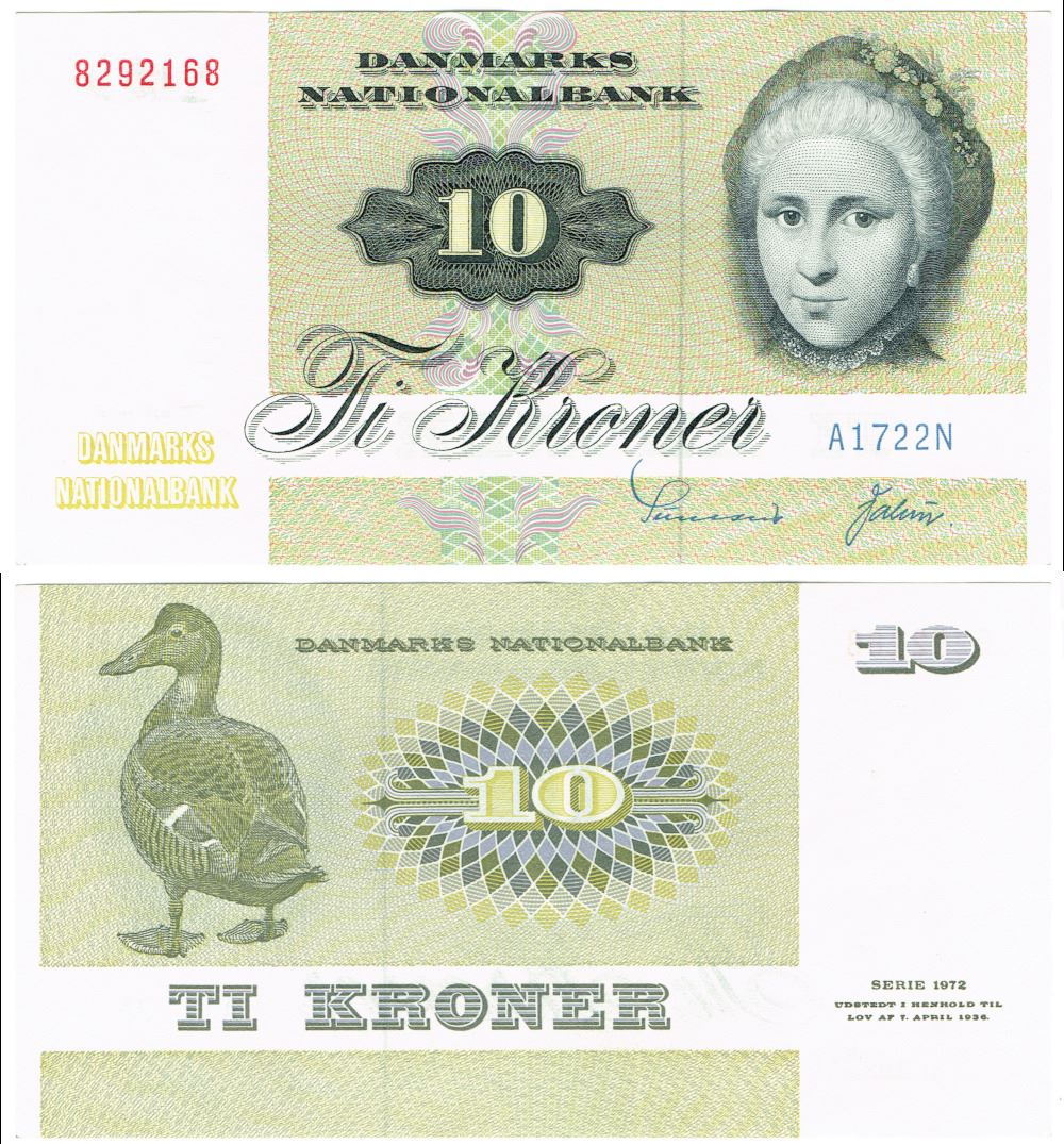Seddel: 10 kr. 1972 A1722N i kv. 01 - 0