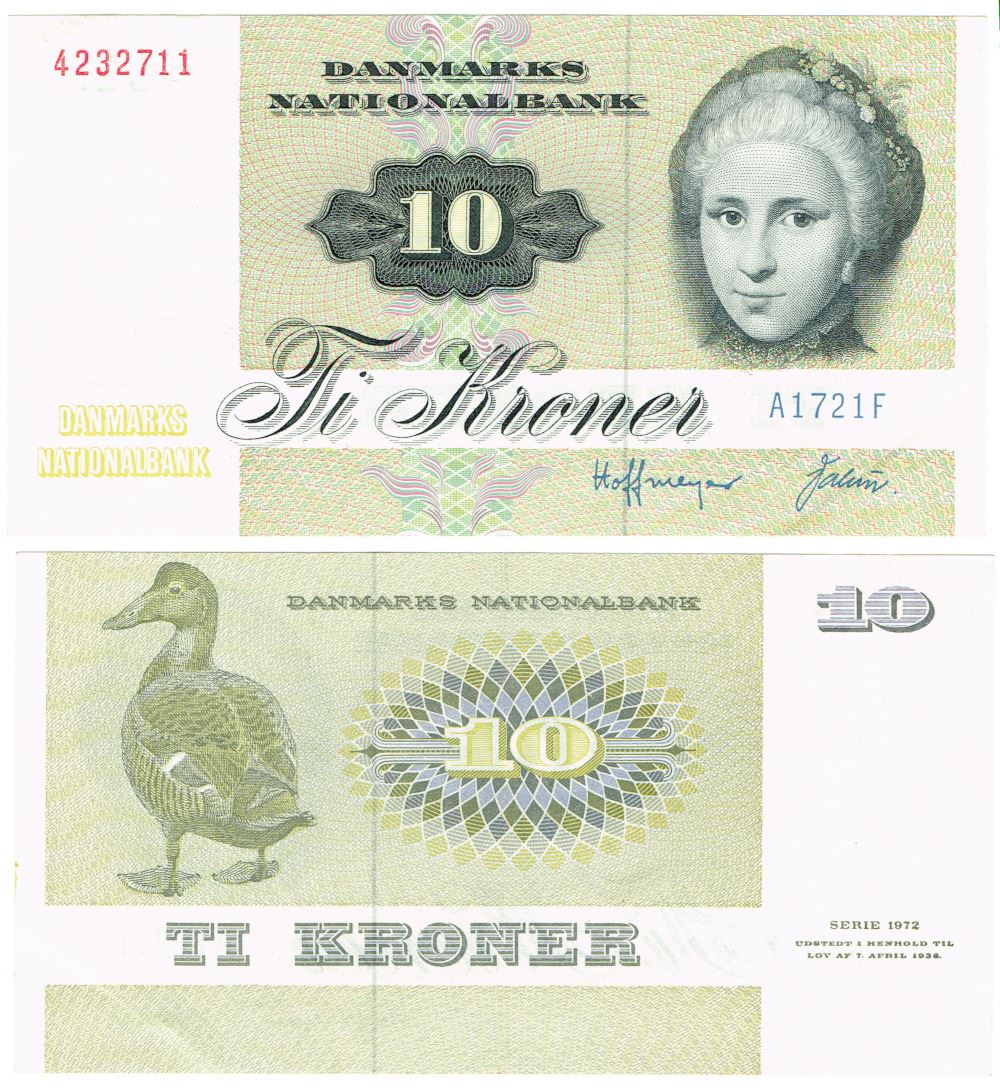 Seddel: 10 kr. 1972 A1721F i kv. 01