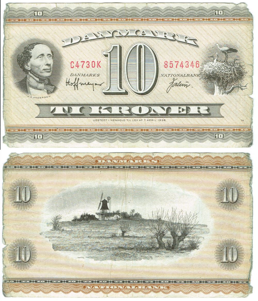 Seddel: 10 kr. 1970 C4730K i kv. 1- OK erstatningsseddel