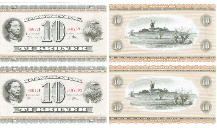 Seddel: 10 kr. 1963 H6632F i kv. 01 - 0 2 stk. fortløbende nr.
