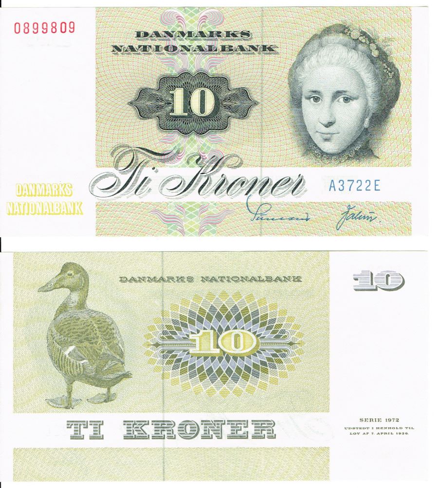 Seddel: 10 kr. 1972 A3722E i kv. 01 - 0