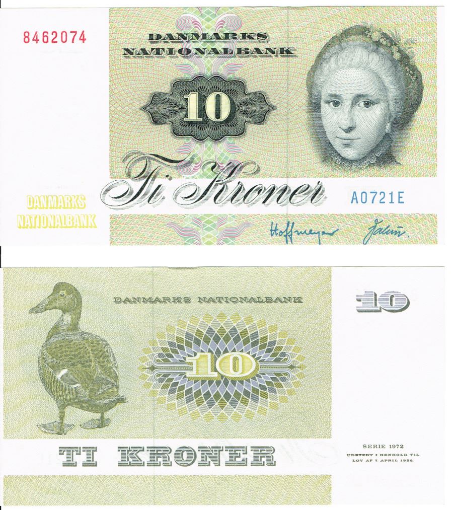 Seddel: 10 kr. 1972 A0721E i kv. 01 - 0