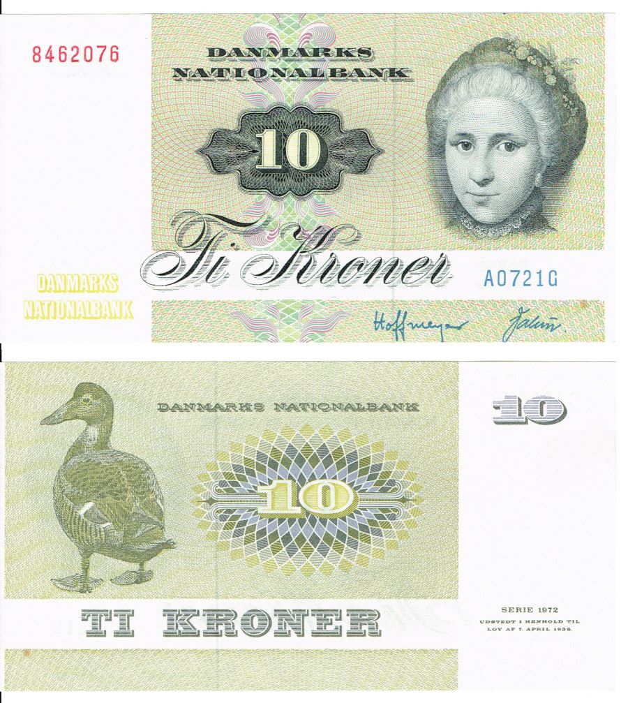 Seddel: 10 kr. 1972 A0721G i kv. 0 - miniplet/farvefejl nederst th