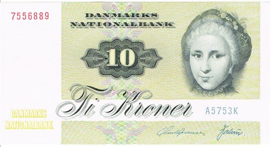 Seddel: 10 kr. 1975 A5753 i kv. 01 - 0