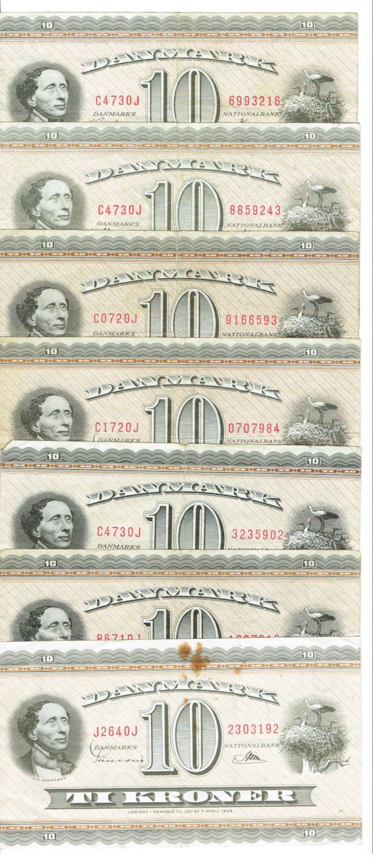 Seddel: 10 kr. 1964 - 1973 7 stk. erstatningssedler