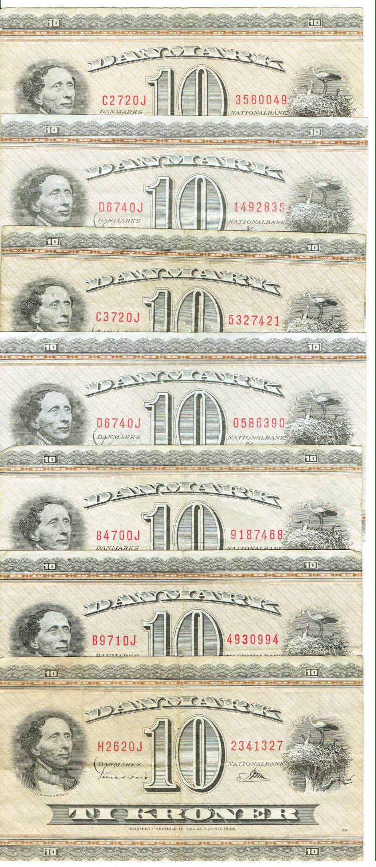 Seddel: 10 kr. 1962 - 1974 7 stk. erstatningssedler