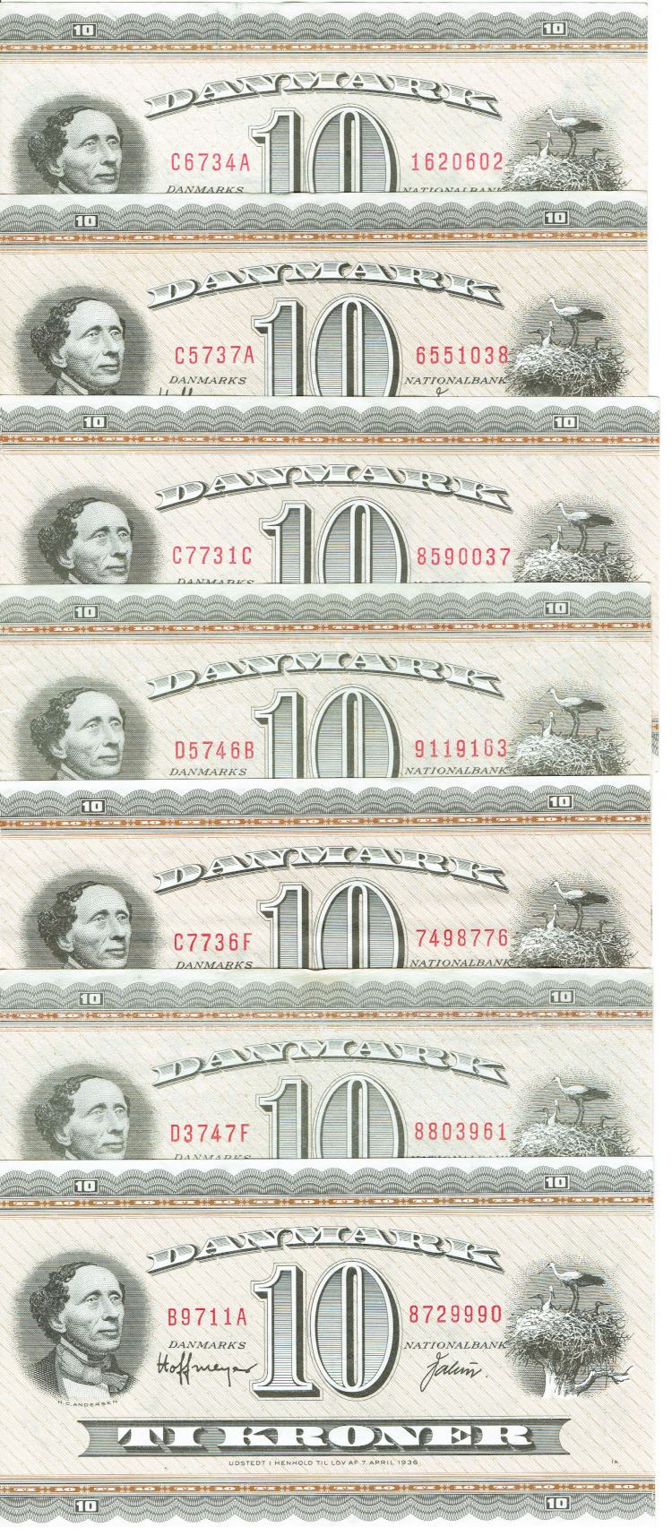 Seddel: 10 kr. 1971 - 1974 i kv. 1+ - 01 7 stk.