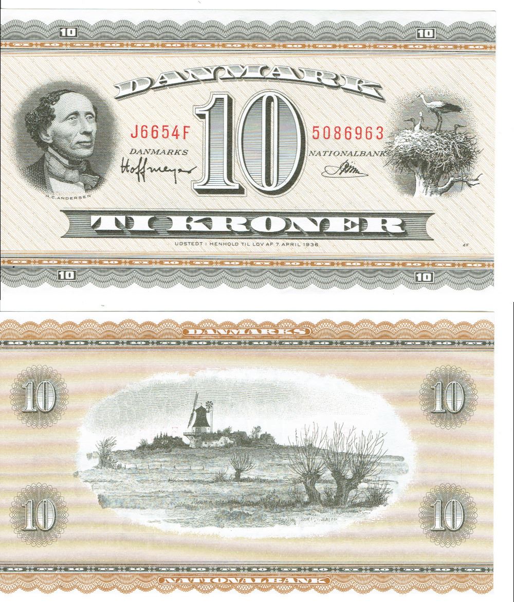 Seddel: 10 kr. 1965 J6654F i kv. 0