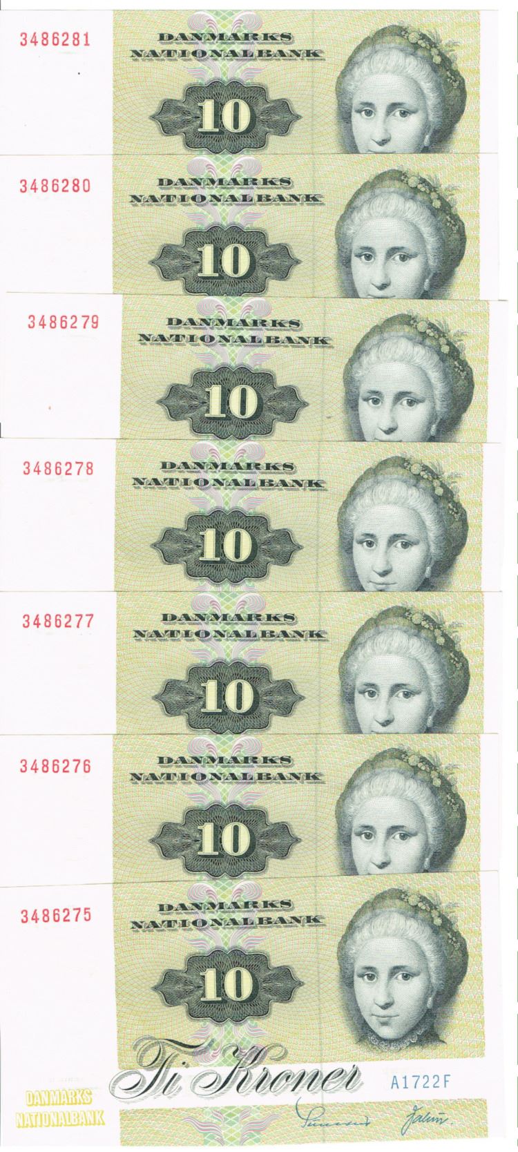 Seddel: 10 kr. 1972 A1722 i kv. 01 - 0 7 stk. fortløbende nr.