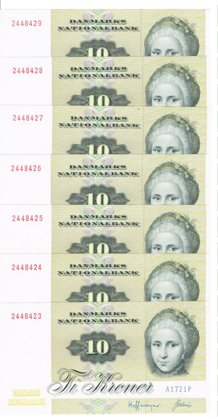 Seddel: 10 kr. 1972 A1721 i kv. 01 - 0 7 stk. fortløbende nr.