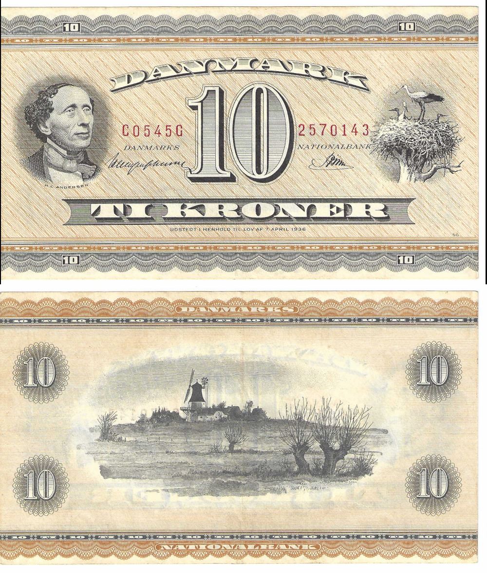 Seddel: 10 kr. 1954 C0545G i kv. 01
