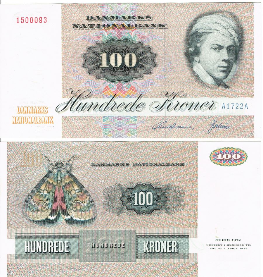 Seddel: 100 kr. 1972 A1722A i kv. 01