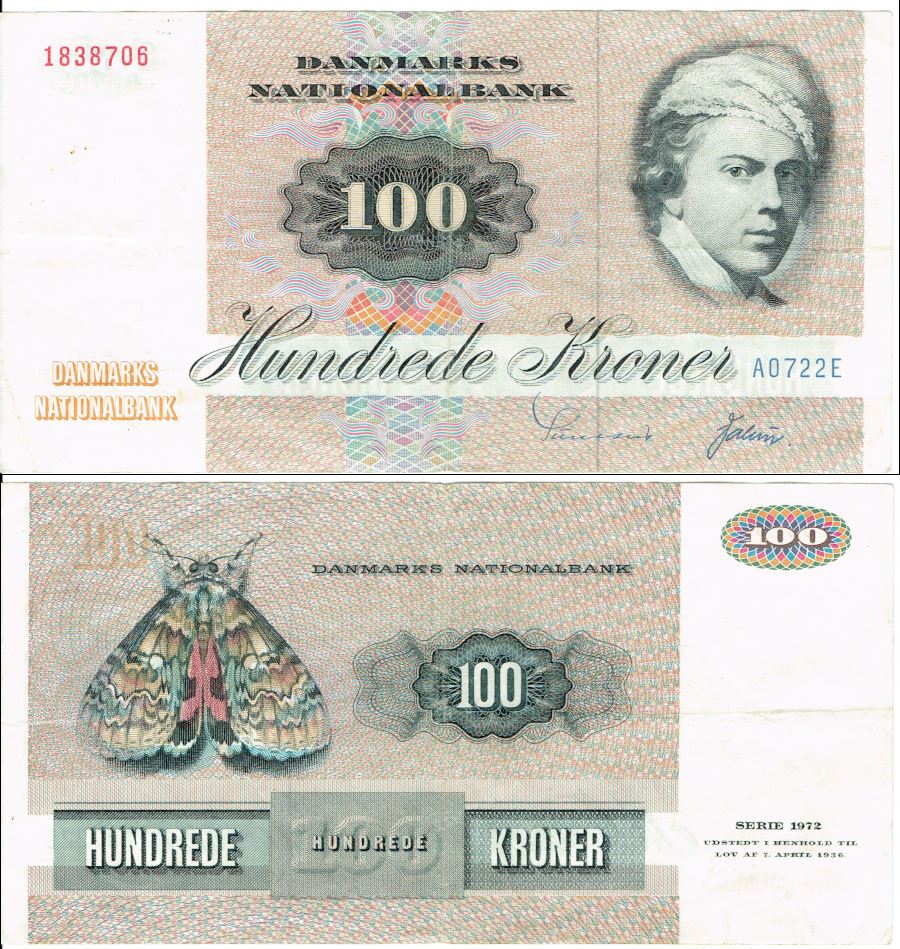 Seddel: 100 kr. 1972 A0722E i kv. 1